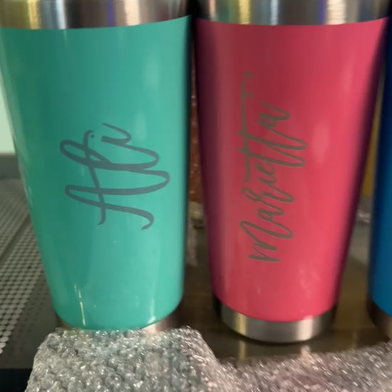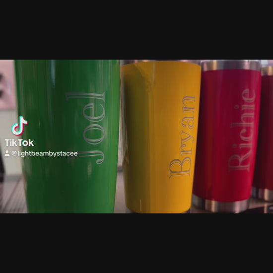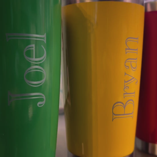 These custom engraved tumblers are made with the customer in mind. Your choice of file, words, letters to engrave.