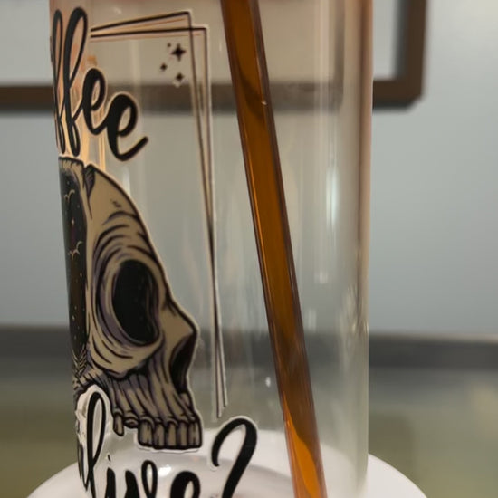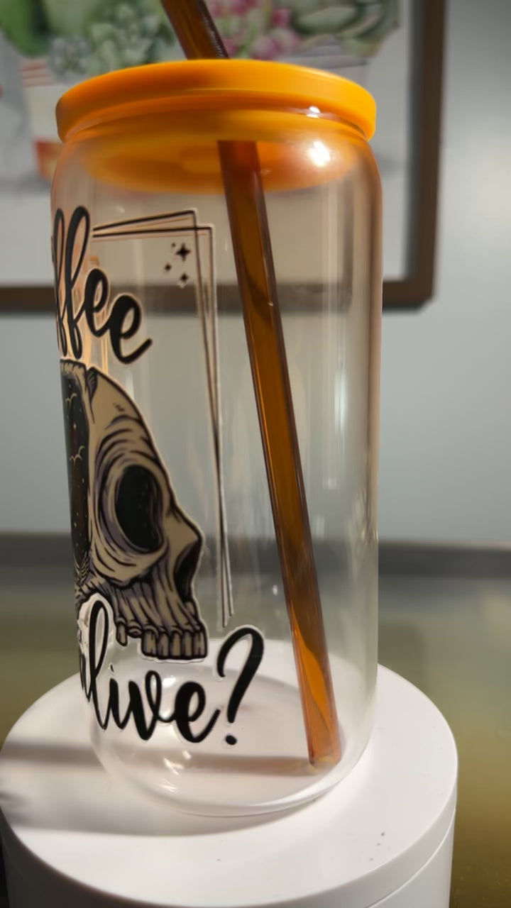 Does this coffee make me look alive? - 16oz GLASS CUP - bamboo style cup